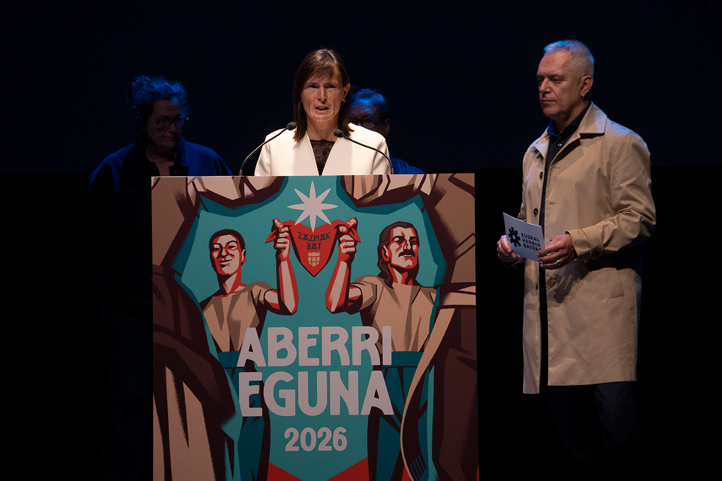 ◦ Aurtengo hitzorduan bi data historiko ekarri nahi izan ditugu, gaurko testuinguruan duten antzekotasunengatik Lehen Aberri Eguna. 1932an Bilbon EAJk deitu zuena. 1929-an lehertu zen krisi ekonomikoaren eta 1931an Espainiar estatuan martxan jarri zen Errepublikaren testuinguruan. Garaian bezala erronka eta aukeren aurrean gaude ere. Horregatik, Campos Eliseos antzokia aukeratu dugu aurtengo ekitaldirako.